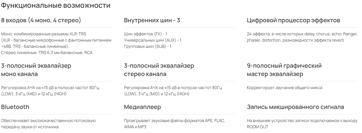 предназначены для использования в составе систем профессионального звука для смешивания, обработки и маршрутизации звуковых сигналов.
