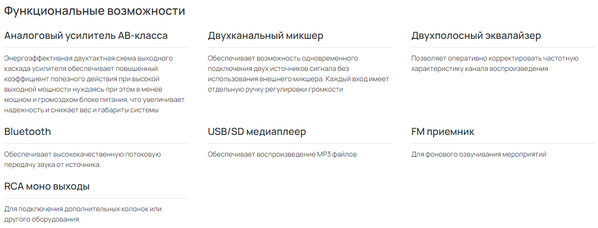 ДОПОЛНИТЕЛЬНО: Bluetooth, FM радиоприемник, USB/SD медиаплеер