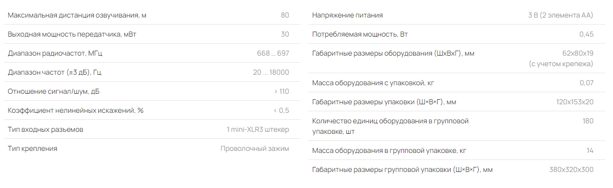 КОМПЛЕКТАЦИЯ: Поясной радиопередатчик, элементы питания AA (2 шт.), руководство пользователя
